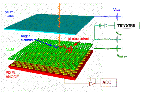 Using small pick-up pads (pixels) in the read-out plane, the detector can achieve unambiguous two-dimensional imaging of soft X-rays at rates up to 4 MHz/pixel. In development for plasma diagnostics at Tokamak fusion machine
