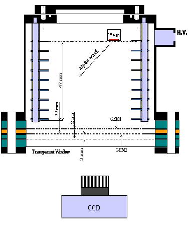 Schematics of the scintillating GEM detector: